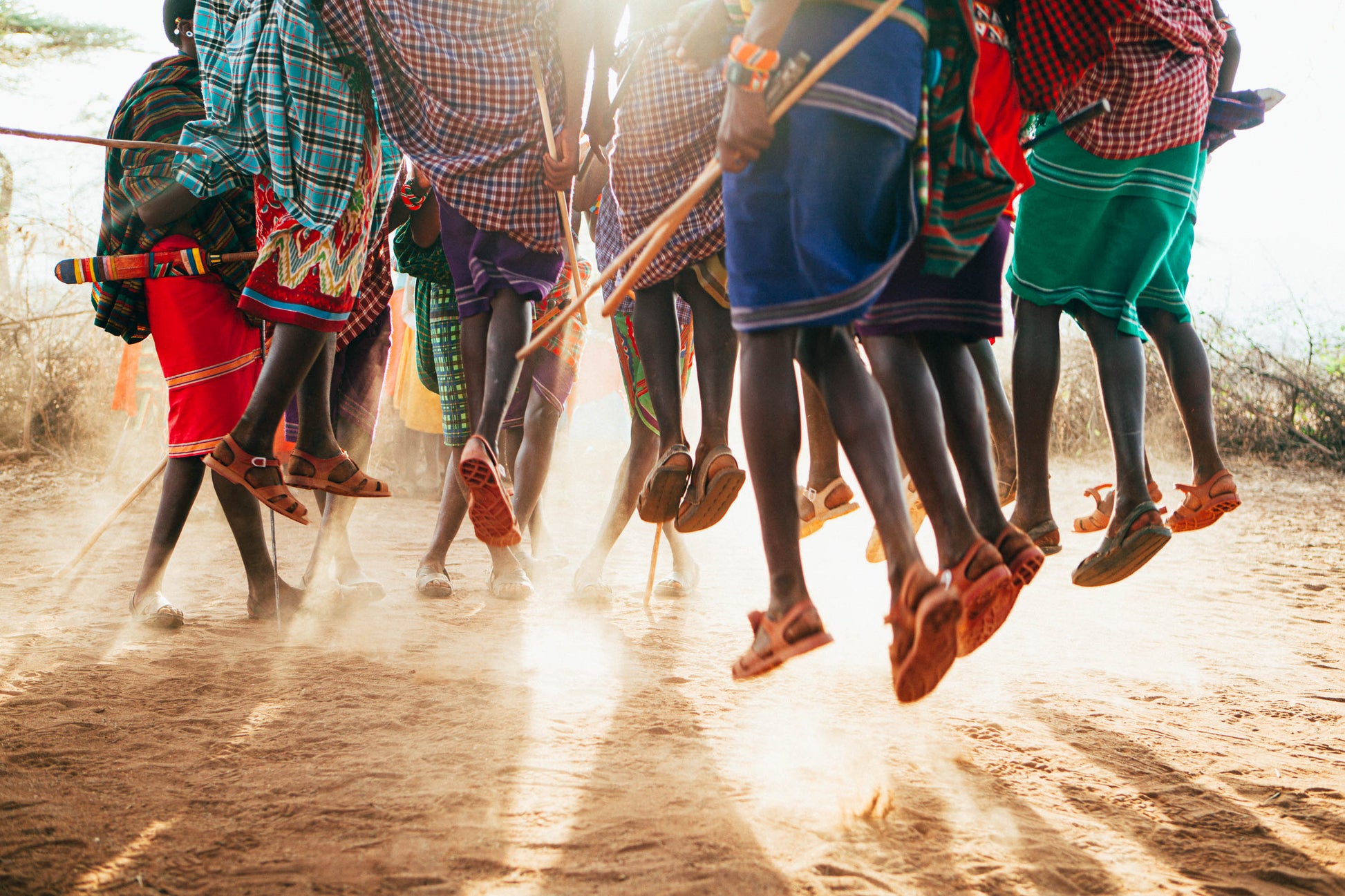 Il Ngwesi Group Ranch, Northern Kenya: The late-afternoon sun casts long shadows over the dry scrub, and the Maasai men of Il Ngwesi's villages gather in a clearing under a large acacia tree– and begin their dance. The air is thick with the sound of the chanting voices of the men and women of the village, rising and falling in a syncopated rhythm. The sandaled feet of the men kick up a fine dust as they leap skyward in unison.