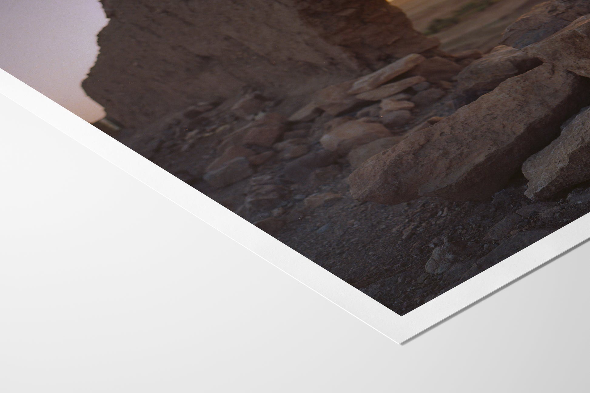 A 0.6-inch, white border runs along the perimeter of the image. Does not come framed. Please allow print to gently flatten out over a few days upon arrival before framing or hanging.