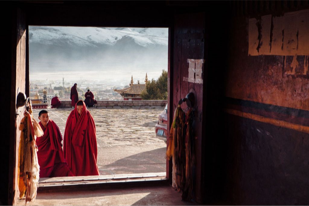 Ganden Tubchen Chokhorling Monastery, Garzê Tibetan Autonomous Prefecture: Amidst a rigorous schedule of lectures and debates, young lamas relish a moment of respite. Some go for a stroll, enjoying the breathtaking view. Others, like any typical teenager, seize the opportunity to go on their phones.