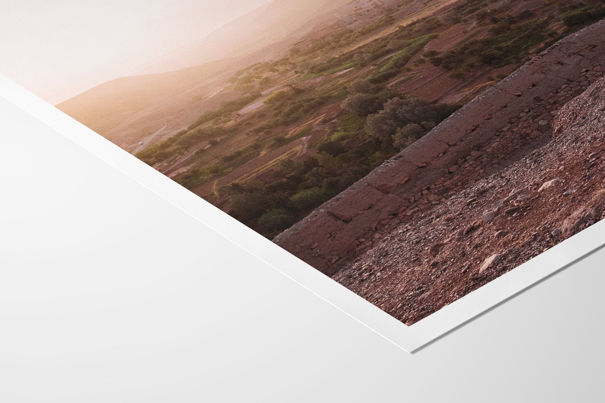 A 0.6-inch, white border runs along the perimeter of the image. Does not come framed. Please allow print to gently flatten out over a few days upon arrival before framing or hanging.